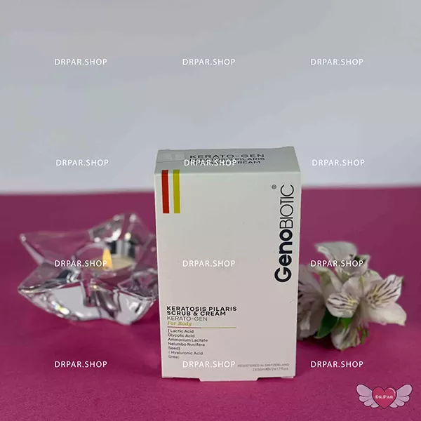 اسکراب کراتوژن ژنو بایوتیک با ترکیبات فعال مانند لاکتیک اسید، گلایکولیک اسید و آمونیوم لاکتات، سلولهای مرده و کراتین اضافی پوست را به آرامی لایه برداری میکند.